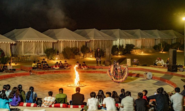 Spend your days discovering the stories of merchant families, exploring cobbled pathways and admiring the craft bazaars that keep the heritage alive. Evenings are all about the calm of the desert — camel rides, traditional Rajasthani performances and a night under a sky full of stars at Sam Dunes.